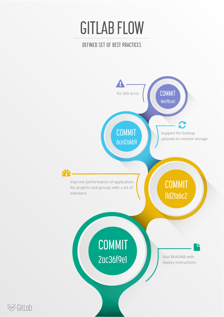 Since many organizations new to git have no conventions how to work with it, it can quickly become a mess. The biggest problem they run into is that many long running branches that each contain part of the changes are around. People have a hard time figuring out which branch they should develop on or deploy to production. Frequently the reaction to this problem is to adopt a standardized pattern such as git flow and GitHub flow. We think there is still room for improvement and will detail a set of practices we call GitLab flow.